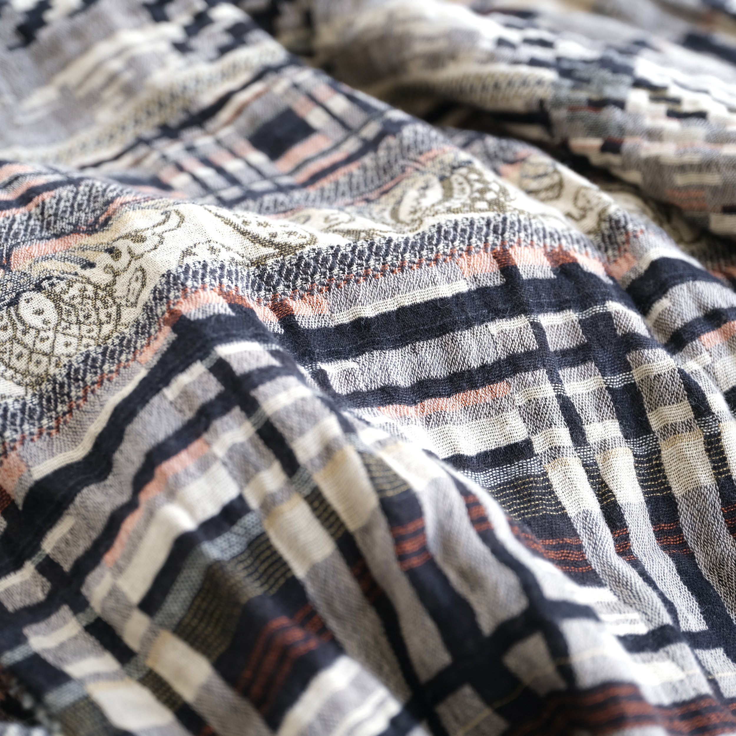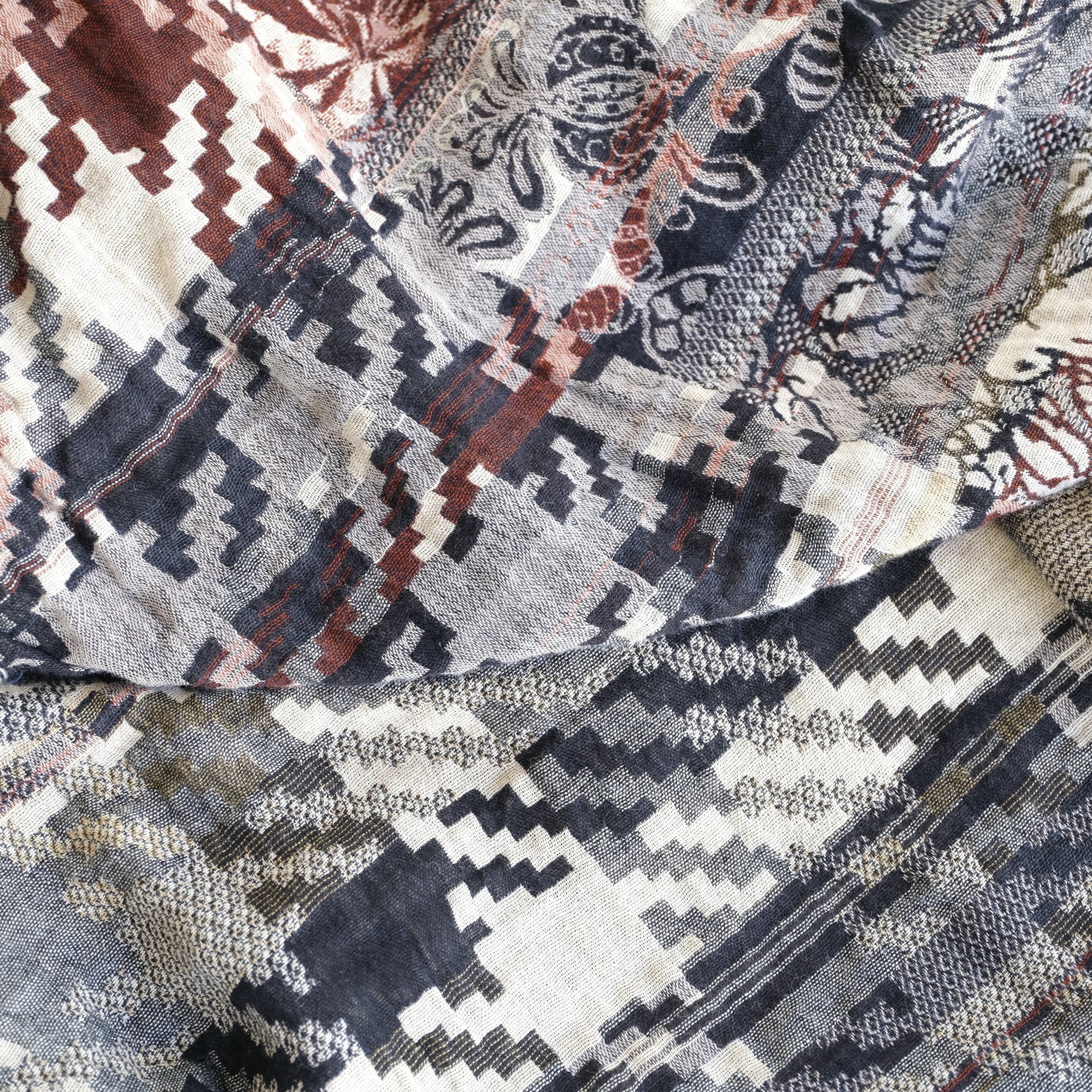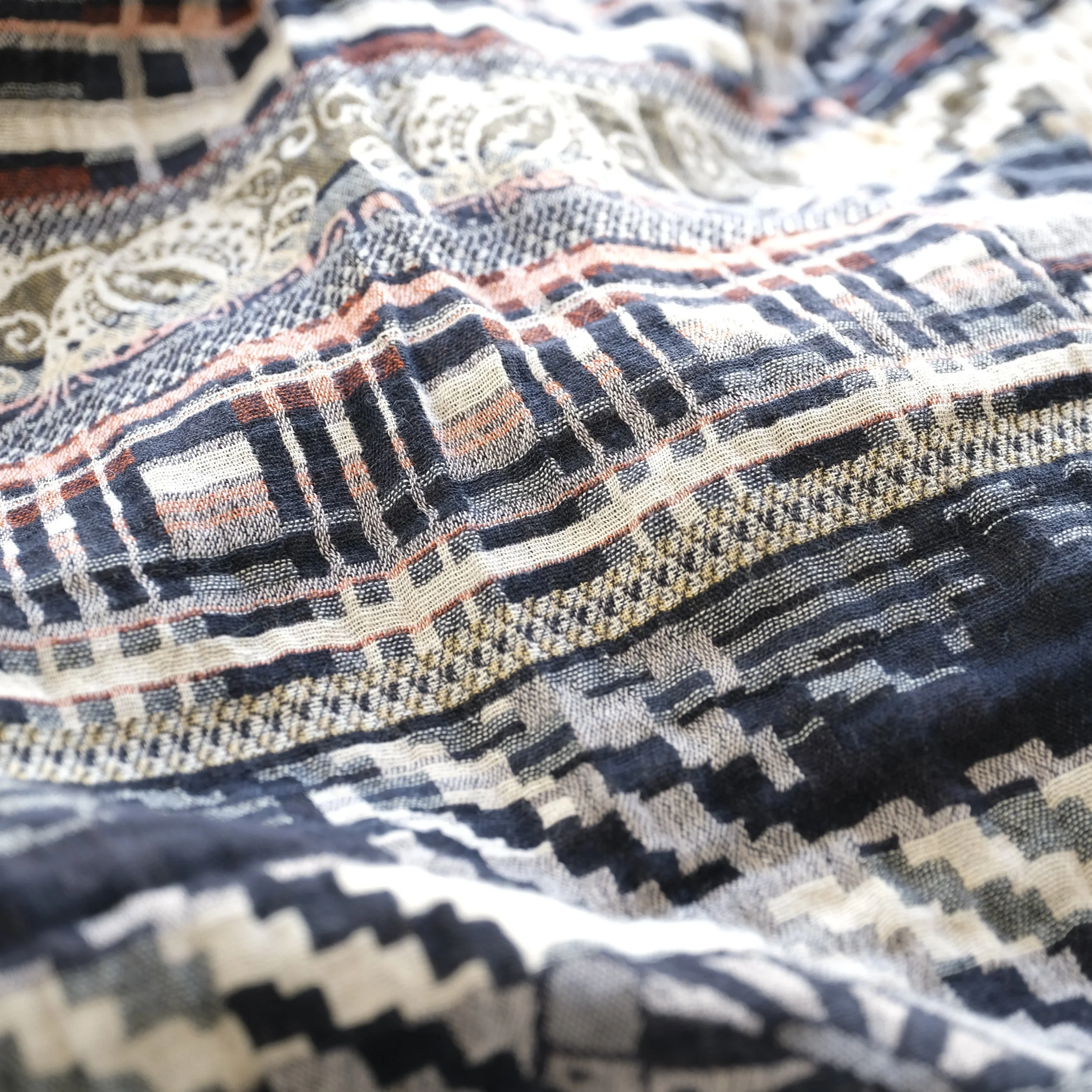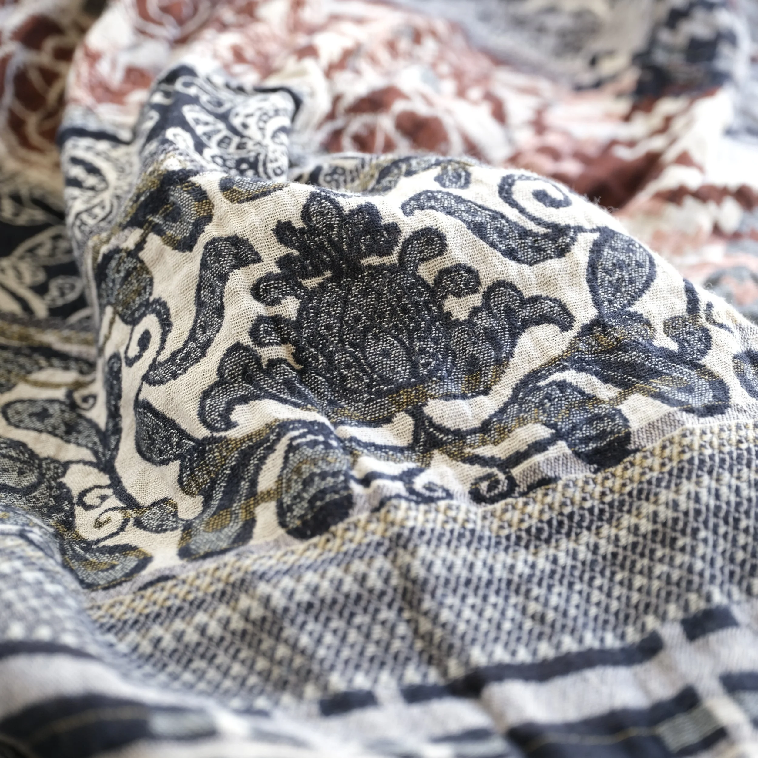 Limited batch of 6 units for the holidays! Létol scarf, crafted in France with certified organic/bio cotton (100% organic cotton or 96% cotton & 4% recycled fibers). New all-seasons & reversible design featuring artisanal Jacquard patterns and rich textures from interlaced colored threads (no prints).